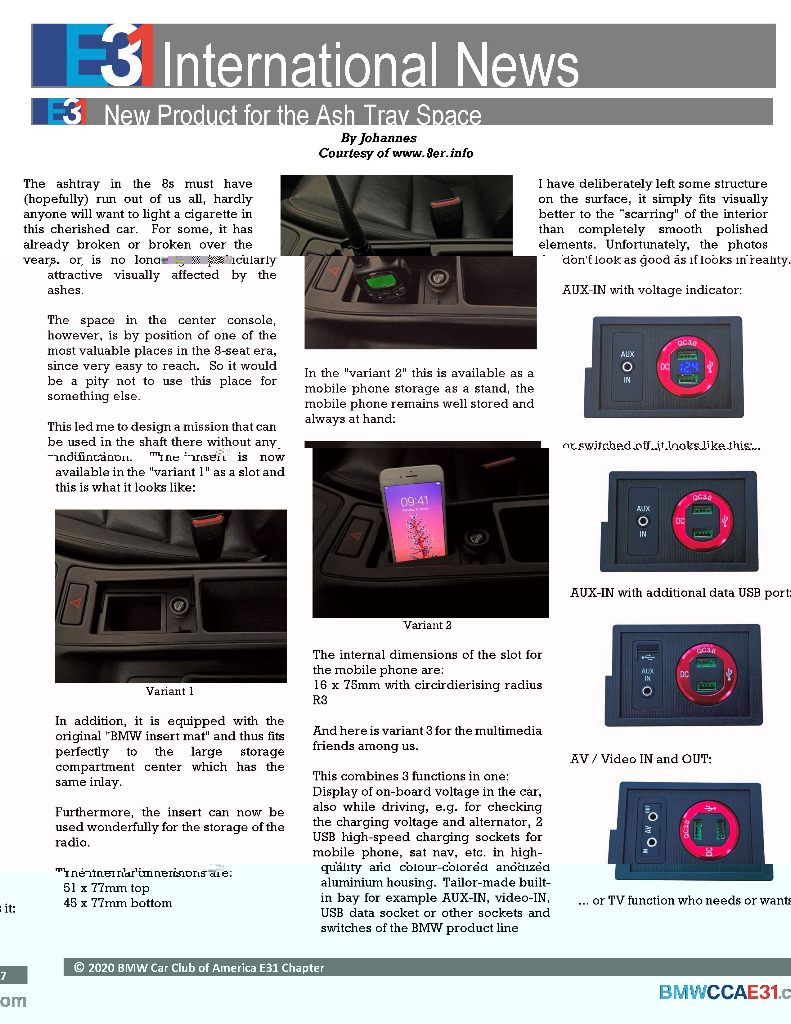 Es wird auf Wunsch hin noch eine 4. Variante geben, Kombination aus den 2 USB-Buchsen und einem kleinen Ablagefach anstatt dem Schalterfach, für diejenigen die keinen AUX etc. brauchen oder wollen.