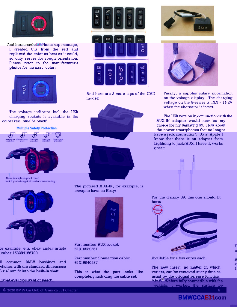 In den Einbauschacht passen alle gängigen BMW Buchsen und Schalter mit den Normmaßen 18 x 41mm.